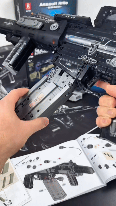 The brick MCX Rifle has the same features as the real one, including a working firing mechanism, matching accessories, and realistic reloading!